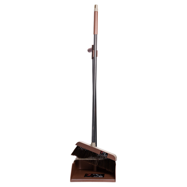 Комплект для уборки состоит из веника и совка, предназначенных для сухой уборки твердых поверхностей. Веник имеет металлическую ручку с петлей для вертикального хранения, что позволяет подвешивать его на крючок или держатель. Длина ручки обеспечивает комфортное использование без необходимости наклоняться, а соединение сегментов фиксируется пластиковым элементом. Щетка веника оснащена плотными, темными ворсинками средней жесткости, расположенными под углом для эффективного сбора пыли и мелкого мусора. Совок изготовлен из прочного пластика, имеет широкое основание с ровным краем, плотно прилегающим к полу. Ручка совка соединяется с ручкой веника с помощью фиксатора, что позволяет хранить комплект в собранном виде компактно и без лишнего пространства. Основные характеристики комплекта для уборки, веника и совка: Размер: 27×25×103 см; Размер щетки: 27 см; Длина ручки совка: 80 см; Длина ручки щетки: 95 см; Материал совка: пластик; Материал веника: полипропилен; Наличие зубцов на совке: да; Держатель для щетки: да. Основные преимущества веника и совка на длинной ручке: Удобство в использовании без лишних наклонов и нагрузки на спину. Подходит для уборки различных напольных покрытий. Компактное хранение благодаря продуманной конструкции. Лёгкий и практичный дизайн для ежедневного применения. Изготовлены из прочных и долговечных материалов. Набор подходит для повседневного использования дома, в офисе или в коммерческих помещениях. Благодаря простой конструкции и возможности вертикального хранения, комплект удобен в транспортировке и не нуждается в дополнительных аксессуарах.