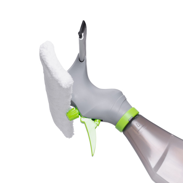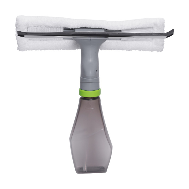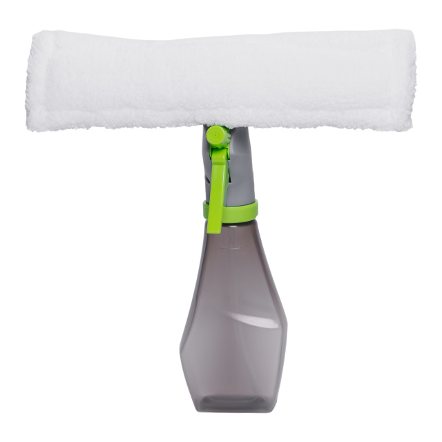 Инструмент сочетает функции распыления и очистки стеклянных поверхностей. Конструкция состоит из распылителя, насадки из микрофибры и резинового скребка. Такой формат позволяет производить полный цикл очистки – от нанесения средства до удаления остатков жидкости – без надобности в дополнительных аксессуарах. Основные характеристики щетки для мытья окон с распылителем: Приемущества щетки для мытья стекол: Встроенный распылитель позволяет равномерно наносить воду или моющее средство. Удобная щётка с мягкой насадкой обеспечивает деликатное очищение без царапин. Совмещает сразу два действия — распыление и очистку, что экономит время. Подходит для стекол, зеркал, витрин и гладких поверхностей. Эргономичная ручка облегчает использование и делает уборку комфортной. Компактный и практичный аксессуар для дома, офиса или автомобиля. Микрофибровая насадка закреплена на пластиковой основе, что обеспечивает равномерное прилегание к поверхности. Скребок изготовлен из гибкого материала, плотно контактирующего со стеклом, уменьшая остатки воды и следы. Распылитель оснащен курком эргономичной формы, что позволяет контролировать количество жидкости при использовании. Подходит для ухода за окнами, зеркалами, душевыми перегородками и другими гладкими поверхностями. Благодаря компактному дизайну инструмент удобно хранить и транспортировать. Модель ориентирована на бытовое использование, позволяет сократить время уборки и уменьшить расход моющих средств.