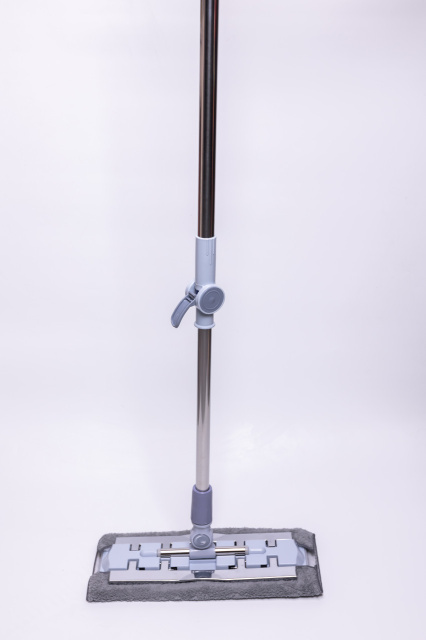 Швабра предназначена для ежедневной уборки твердых поверхностей в бытовых или коммерческих помещениях. Она оснащена длинной металлической ручкой с подвешивающим отверстием, что обеспечивает удобное хранение. Верхняя часть ручки имеет эргономичное покрытие, которое способствует комфортному захвату во время использования. В центральной зоне расположено пластиковое разъединение, которое фиксирует. Механизм крепления к насадке включает поворотный шарнир, обеспечивающий подвижность во время уборки и позволяющий добраться до труднодоступных участков. Основа швабры – прямоугольная платформа со скругленными краями, которая соединяется с насадкой через шарнирный механизм. Насадка изготовлена из микрофибры с петлистой текстурой, хорошо впитывающей влагу и мелкие частицы. Крепление к платформе производится с помощью липучки, что позволяет быстро снимать и стирать материал. Основные характеристики швабры для мытья полов и стен: Вес: 0,6 кг; Высота швабры: 130 см; Габариты насадки: 40×17 см; Материал: пластик + нержавеющая сталь; Максимальная длина ручки: 130 см; Минимальная длина ручки: 95 см. Особенности универсальной швабры для уборки с микрофиброй: Подходит для разных поверхностей – кафель, камень, лестницы, углы и труднодоступные места. Экономия времени – благодаря высокой впитывающей способности уборка занимает всего несколько минут. Простота использования – классическая форма и лёгкий вес делают уборку комфортной. Долговечность – сменная насадка выдерживает многократное использование и стирку. Продукт подходит для использования на плитке, ламинате, паркете и других гладких поверхностях. Благодаря простой конструкции и съемной насадке швабра легко очищается и обслуживается. Все элементы изделия имеют четко выраженную функциональность, что позволяет пользователю сосредоточиться на эффективной уборке без усилий.