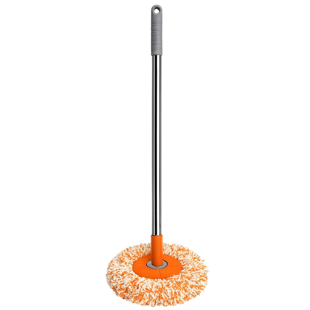 Этот тип швабры предназначен для уборки напольных покрытий в домашних условиях. Она имеет телескопическую металлическую ручку, которая регулируется по длине, что позволяет адаптировать инструмент к росту пользователя или особенностям помещения. Нижняя часть ручки оснащена покрытием для удобного захвата, а верхний конец — отверстием для вертикального хранения. Моющая часть состоит из круглого основания, к которому крепится насадка из мягкого ворса. Центральная зона насадки плотно зафиксирована, а наружный край имеет разрыхленную структуру, что позволяет охватывать большую площадь и проникать в углы. Съемная насадка, пригодная для ручной или машинной стирки, крепится к основанию с помощью резьбового или нажимного механизма. Основные характеристики круглой швабры для уборки: Вес: 0,2 кг; Диаметр насадки: 18 см; Телескопическая ручка, максимальная длина: 105 см; Назначение: мытье полов и твердых поверхностей; Материал ручки: металл/пластик; Компактное хранение: да. Особенности набора для мытья пола: Эффективное удаление загрязнений – легко справляется с пятнами на любых поверхностях. Широкая универсальность – подходит для автомобилей, полов, потолков и стен. Удобный дизайн – выдвижная ручка обеспечивает доступ к высоким местам и уголкам. Разнообразное применение – идеально подходит для всех видов напольного покрытия. Швабра подходит для ежедневного ухода за ламинатом, плиткой, линолеумом и другими гладкими поверхностями. Благодаря круглой форме насадки она эффективно работает вокруг ножек мебели, вдоль плинтусов и в других труднодоступных местах. Конструкция изделия позволяет быстро менять насадку и удобно сохранять инструмент после использования.