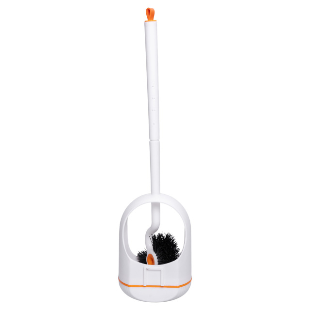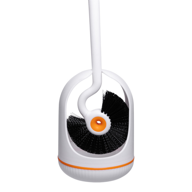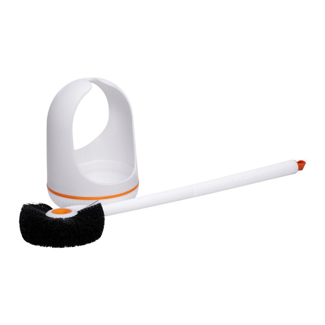 Этот набор состоит из туалетного ершика с длинной ручкой и вертикального держателя, предназначенного для хранения инструмента после использования. Ручка имеет петлю на верхнем конце, что позволяет подвесить щетку или удобно держать ее во время очистки. Рабочая часть щетки оснащена щетиной средней жесткости, расположенной плотно для эффективного удаления загрязнений. Держатель имеет стойкую конструкцию с отверстием для щетки, что позволяет хранить ее в вертикальном положении. Внутренняя часть держателя рассчитана на то, чтобы щетка не касалась дна, что способствует вентиляции и уменьшению накопления влаги. Наружный корпус гладкий, без лишних элементов, что облегчает уход и очистку. Набор занимает минимум пространства и может размещаться на полу или рядом с унитазом. Основные характеристики ершика для чистки унитаза: Высота: 53 см; Материал: пластик; Способ установки: напольный. Особенности щетки для мытья унитаза: Компактный набор удобно размещается рядом с унитазом, не занимая много места. Держатель удерживает щетку в вертикальном положении, обеспечивая чистоту вокруг. Эргономичная ручка с нескользящим покрытием делает уборку комфортной. Средняя жесткость щетины эффективно справляется с загрязнениями. Стержень легко очищается и не подвержен воздействию влаги. Щетка хранится в закрытом положении, что поддерживает гигиеничность и уменьшает запахи. Благодаря простой форме и функциональности набор подходит для использования в домашних санузлах, гостиничных номерах или офисных помещениях. Его конструкция обеспечивает удобство в ежедневном уходе за сантехникой, а также поддерживает порядок в зоне хранения. Наличие петли и компактного держателя позволяет интегрировать набор в разные типы интерьера без необходимости в дополнительных аксессуарах.