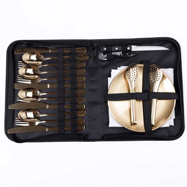 Набор посуды для пикника на 4 персоны 24 предмета Золотистый HP-21-2