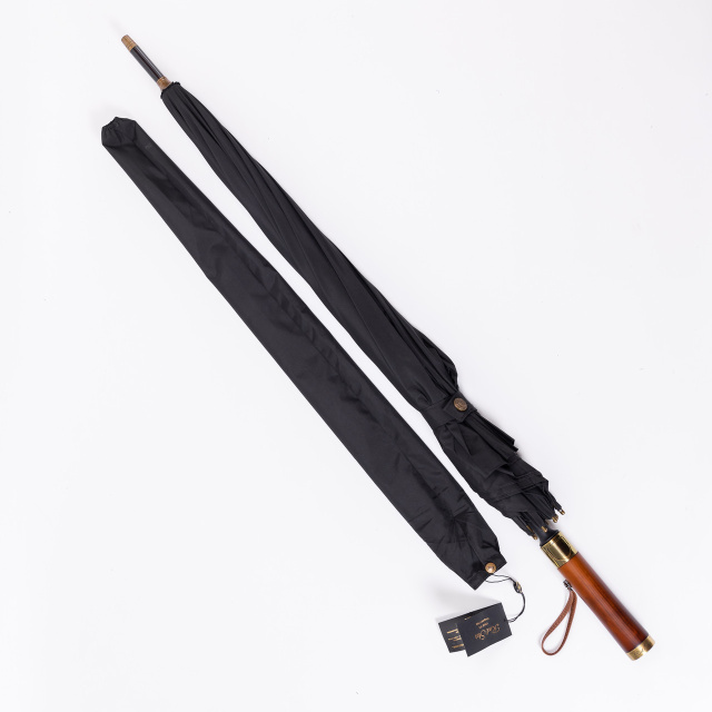 Классический зонт-трость полуавтомат из полиэстера — практичный и элегантный аксессуар для защиты от дождя. Удлиненный купол диаметром 124 см