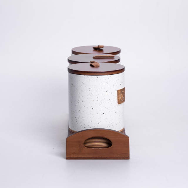 Банки с бамбуковыми крышками на подставке предназначены для удобного и упорядоченного хранения различных продуктов на кухне. В комплект входит 3 емкости, что позволяет размещать как основные сыпучие ингредиенты, так и мелкие специи или добавки. Крышки из натурального бамбука плотно закрывают банки, сохраняя аромат и свежесть содержимого. Основные характеристики емкостей для сыпучих продуктов Размер: 35×11.5×15.5 см; Материал: стекло + бамбук; Объем баночек: 800 мл; Высота баночек: 15 см; Высота подставки: 10 см. Подставка из бамбука обеспечивает компактное расположение банок, экономит место и придает упорядоченности рабочей зоне. Банки изготовлены из прочного материала, устойчивого к царапинам и простому в уходе. Различный объем емкостей позволяет удобно организовать кухонные запасы по частоте использования. Этот набор позволяет держать все необходимые ингредиенты под рукой во время приготовления блюд, а также поддерживать порядок на кухонном столе или полке. Благодаря продуманной конструкции и надежному закрыванию банки подходят для повседневного использования.
