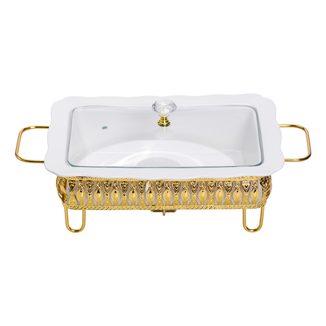 Фарфоровый прямоугольный мармит предназначен для подачи горячих блюд с поддержанием их температуры на протяжении всего еды. Емкость изготовлена из керамики, которая равномерно прогревает и сохраняет тепло, а стеклянная крышка позволяет контролировать содержимое без необходимости ее снятия. Плотное закрывание помогает удерживать аромат и свежесть блюда. Основные характеристики мармита: Размер с подставкой: 36×21×15 см; Размер без подставки: 28×21×11 см; Объем: 1.5 л; Материал мармита: фарфор; Материал крышки: стекло; Материал подставки: металл. Металлическая подставка обеспечивает устойчивость конструкции и имеет специальное место для размещения свечи-таблетки, поддерживающей оптимальную температуру блюда. Благодаря этому мармит удобен для использования во время праздничных обедов, фуршетов или семейных ужинов. Плавный подогрев свечой позволяет избежать пригорания и пересушивания пищи. Конструкция мармита проста в уходе: керамическую емкость и стеклянную крышку можно легко мыть, а металлическая подставка устойчива к деформациям и долговечна. Такая посуда станет практичным решением для эффектной подачи и сохранения тепла блюд на любом застолье.