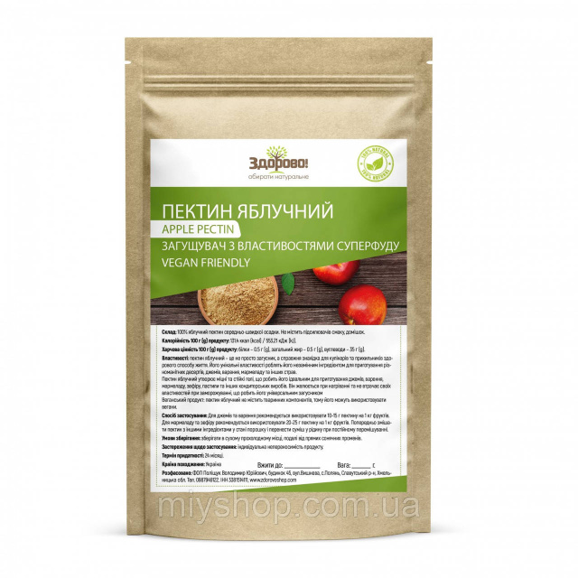 Пектин яблочный средне-быстрый осадки - это натуральный загуститель, который изготавливается из яблочного жома. Он не имеет вкуса и запаха, поэтому не влияет на вкус и аромат ваших десертов. А ще Vegan friendly!