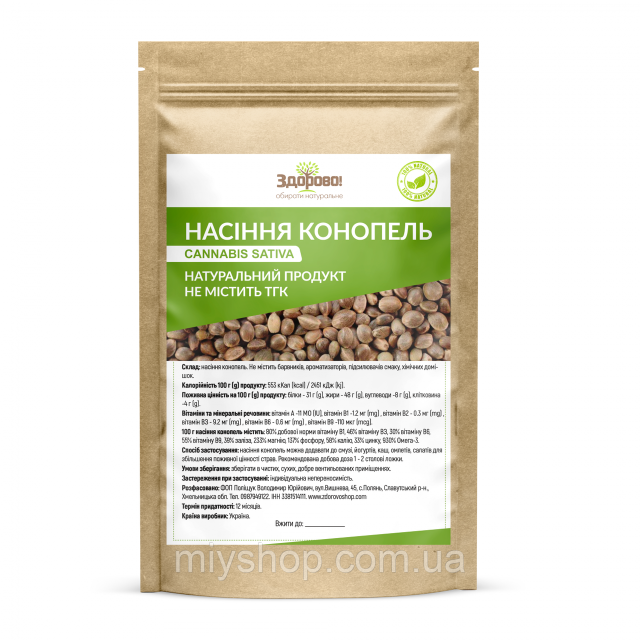 Не смотря на то, что данное семя происходит из растения конопли обыкновенной (лат. Cannabis sativa), оно не содержит тетрагидроканабинола (ТГК), а значит не вызывает никаких психотропных реакций. Напротив, употребление семян конопли способно улучшить пищеварение, сбалансировать гормоны и ускорить обмен веществ. Благодаря своему антиоксидантному действию семена конопли могут уменьшить симптомы многочисленных заболеваний, улучшая работу сердца, состояние кожи и суставов.